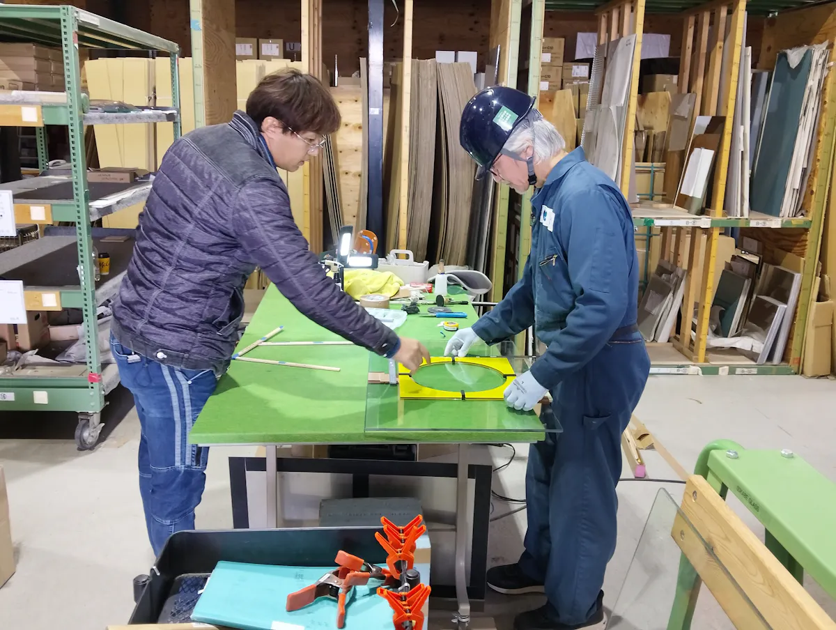 今回は、本番を想定した時間配分で、ガラスの加工から組み立て、仕上げまで通しで行い、箱型作品の製作に取り組みました。正確な加工、美しい仕上げ、作業手順など大会までに改善すべき点を確認する貴重な機会となりました。